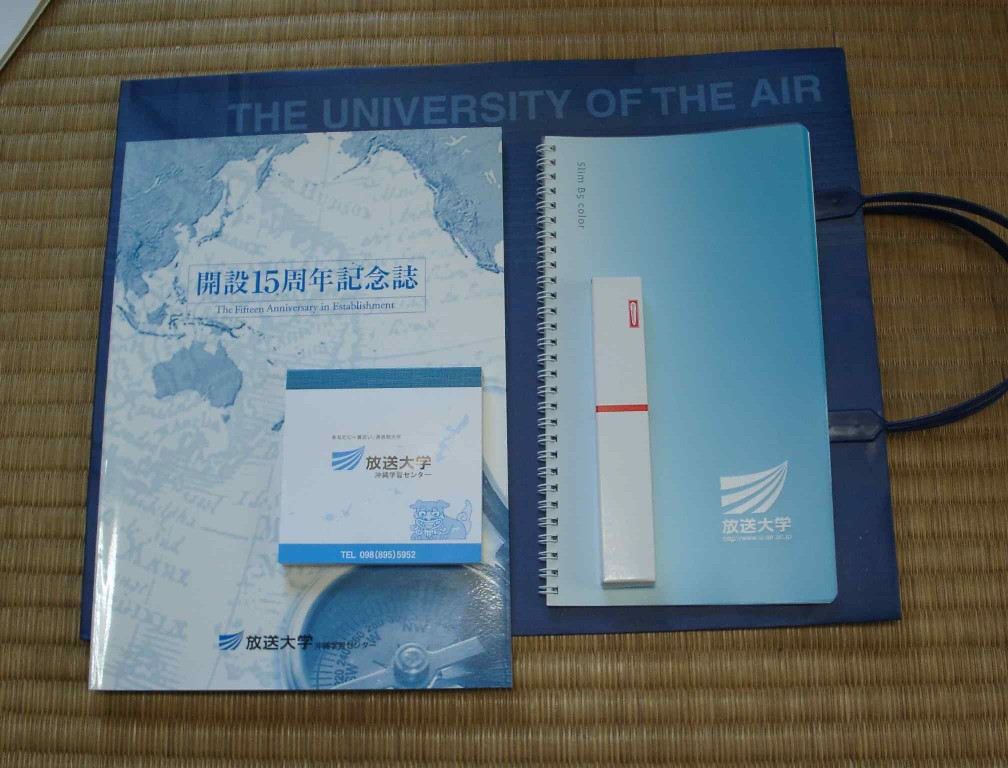 ちゃんと卒業した証拠を示そう。 その他に、メモ帳やノート、ボールペン、開設15周年記念誌をいただいた。 沖縄学習センター独自の袋もデザインを新しくしたとかなんかでそれもいただいた。